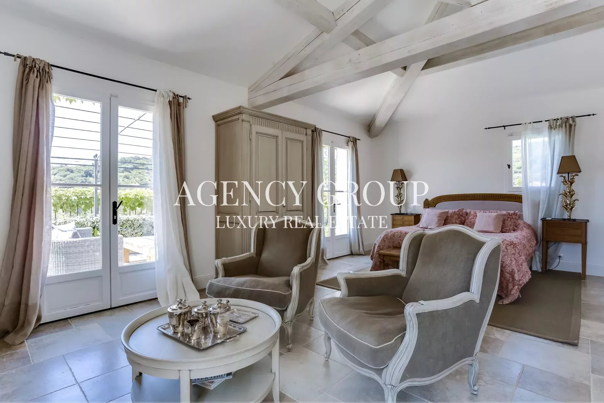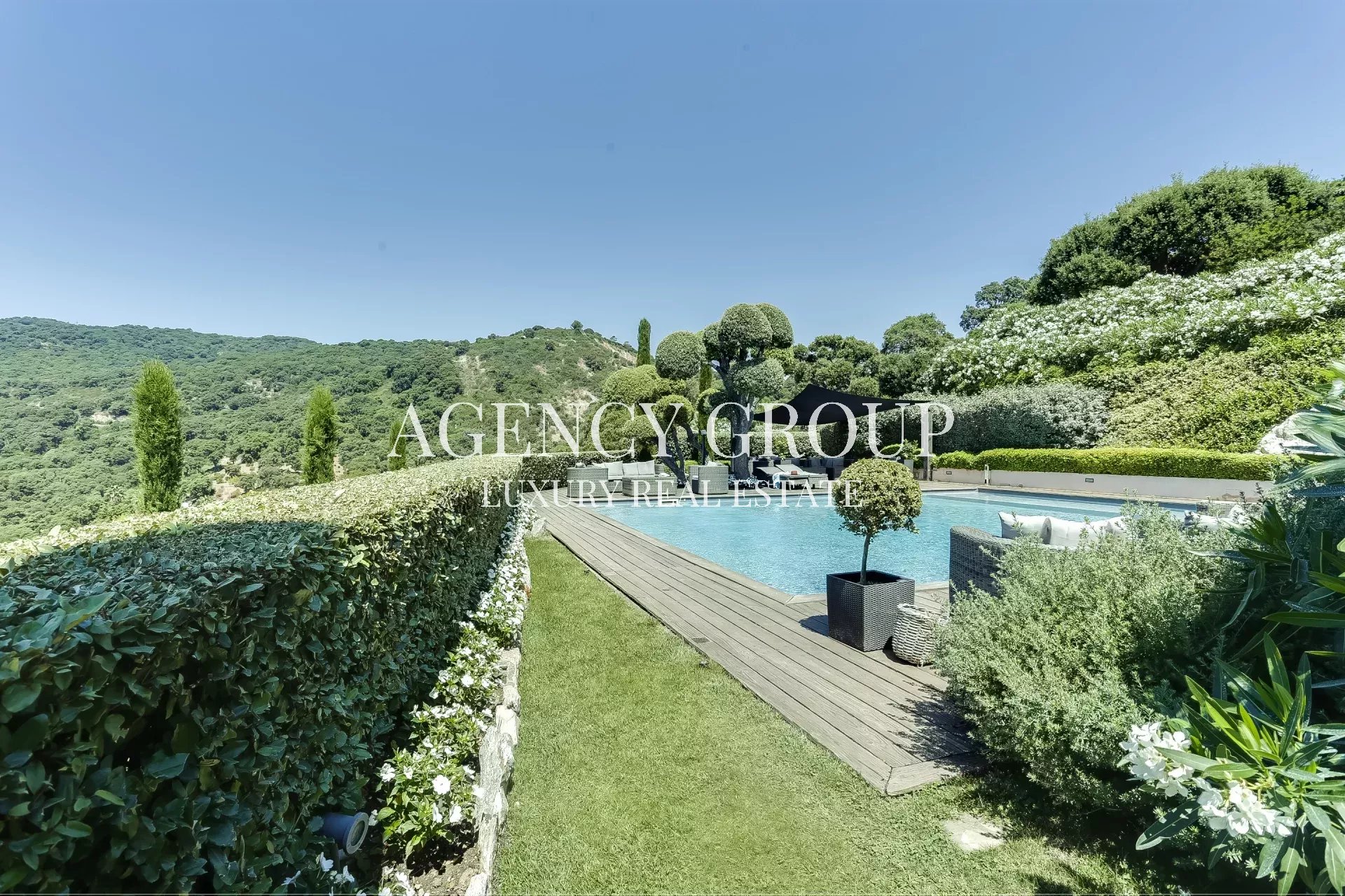 La demeure profite d’une magnifique vue mer panoramique sur le Golfe de Saint-Tropez et d’une situation géographique stratégique de par son calme absolu tout en étant à quelques kilomètres des plages et du village de Saint-Tropez.