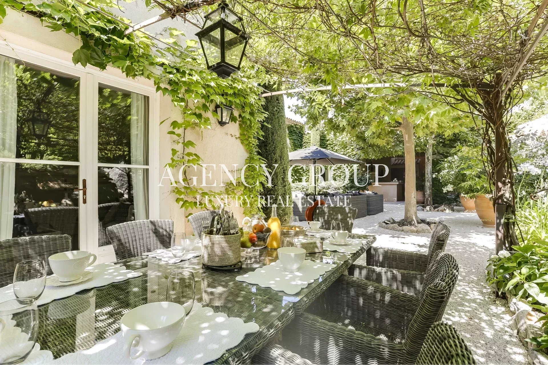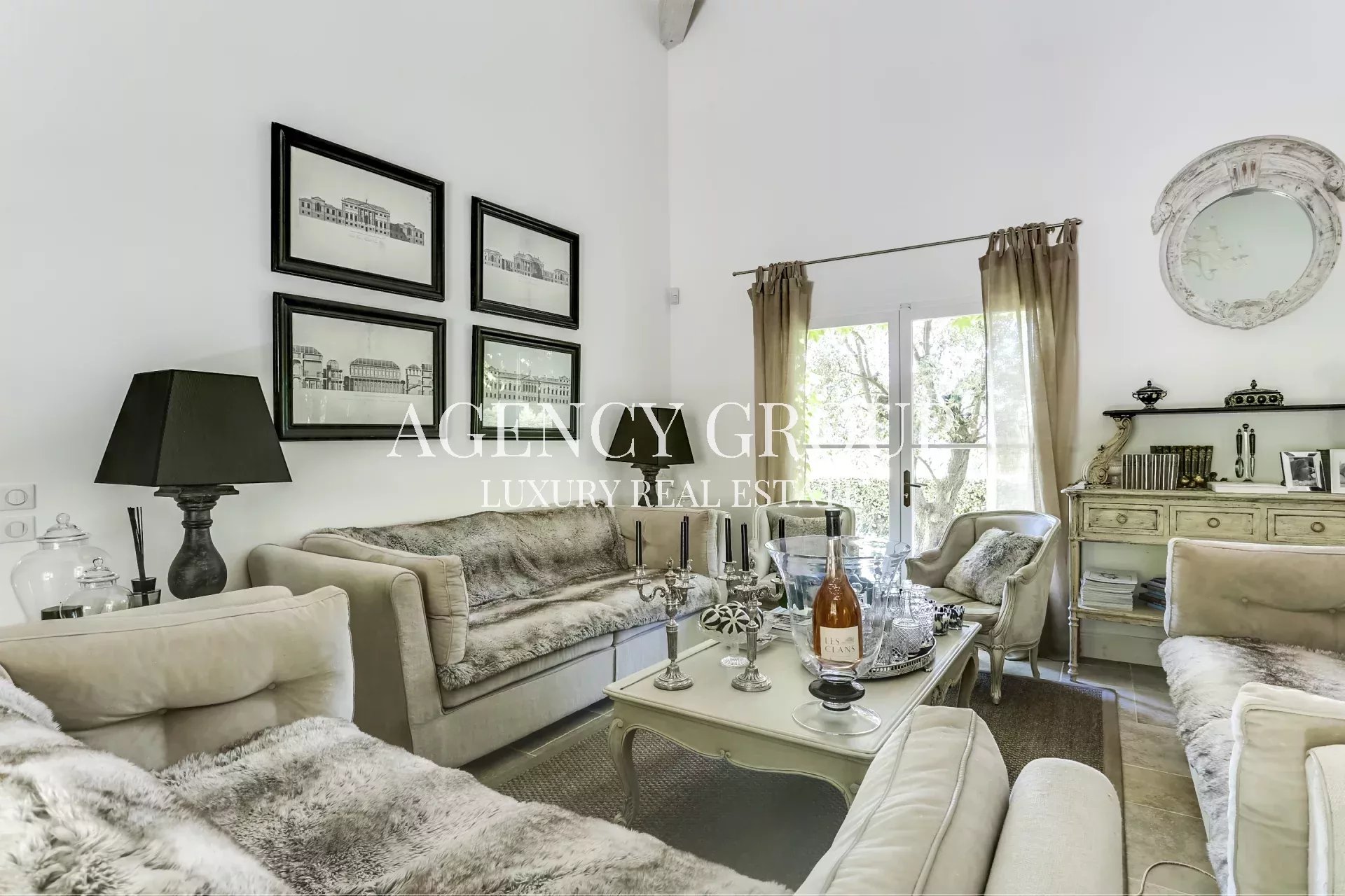 Les plus de la villa : Ménage quotidien, petit-déjeuner inclus, linge, service conciergerie, piscine au sel, barbecue, monte-charge, parking, portail électrique, TV, climatisation, terrain de pétanque, helipad.