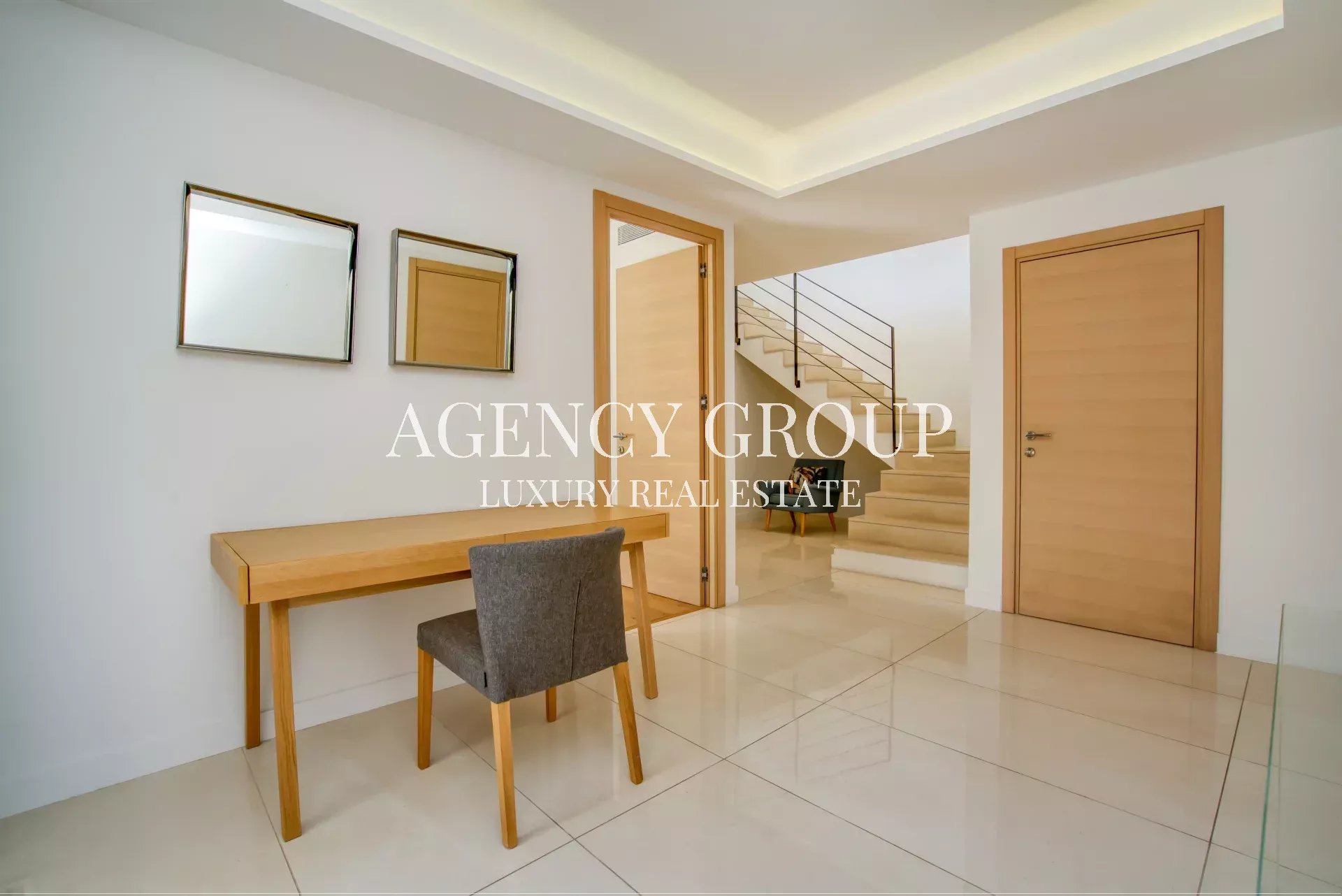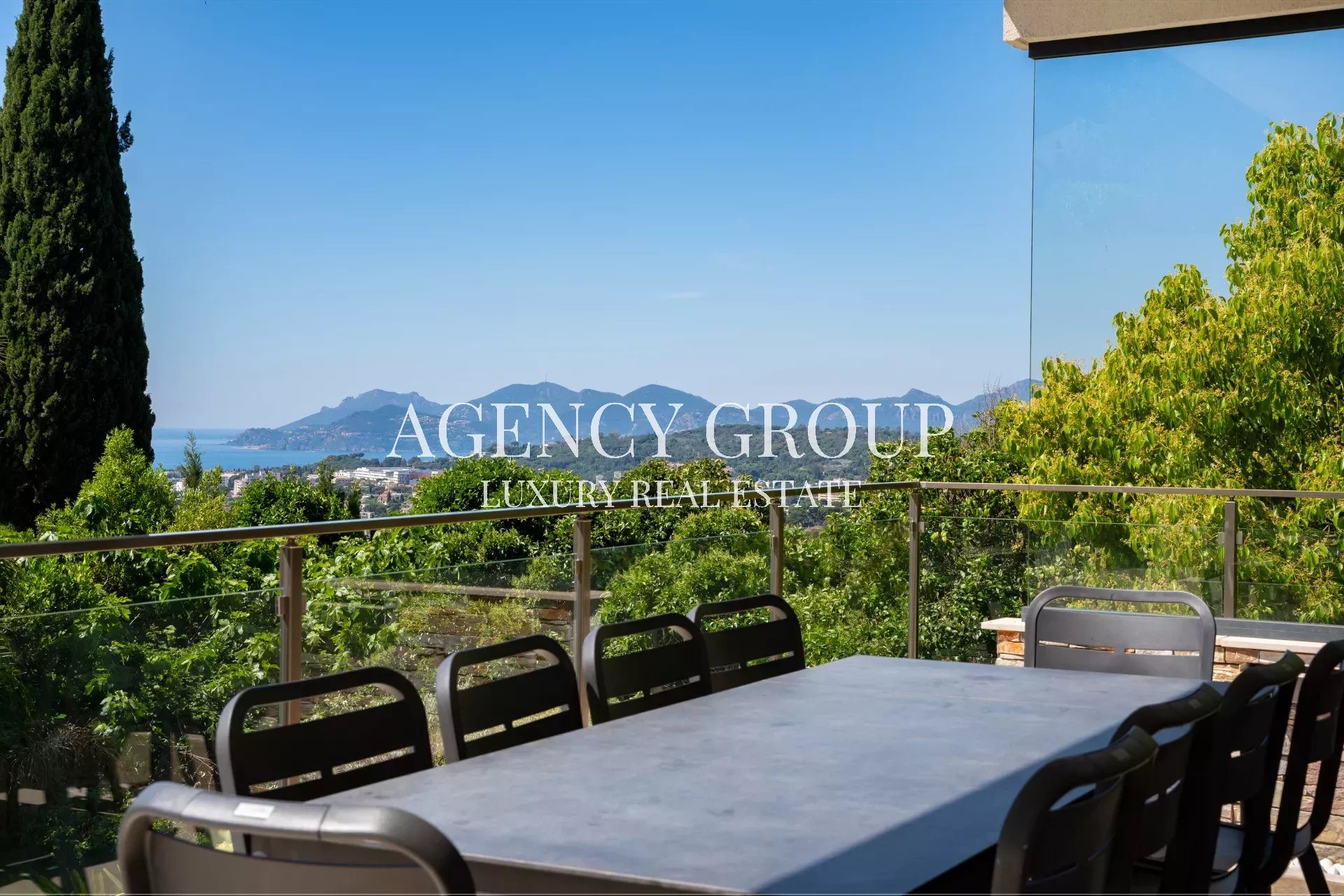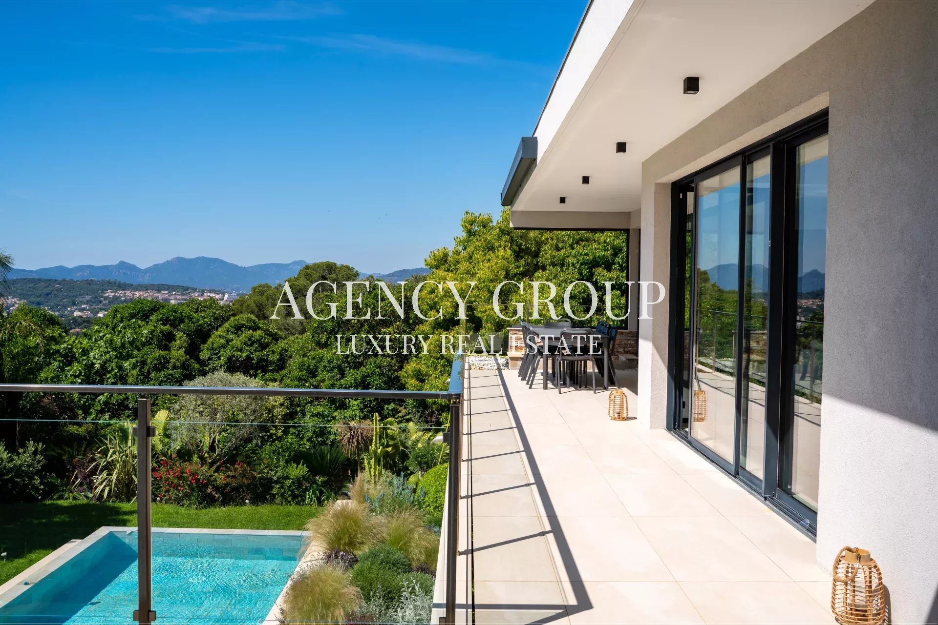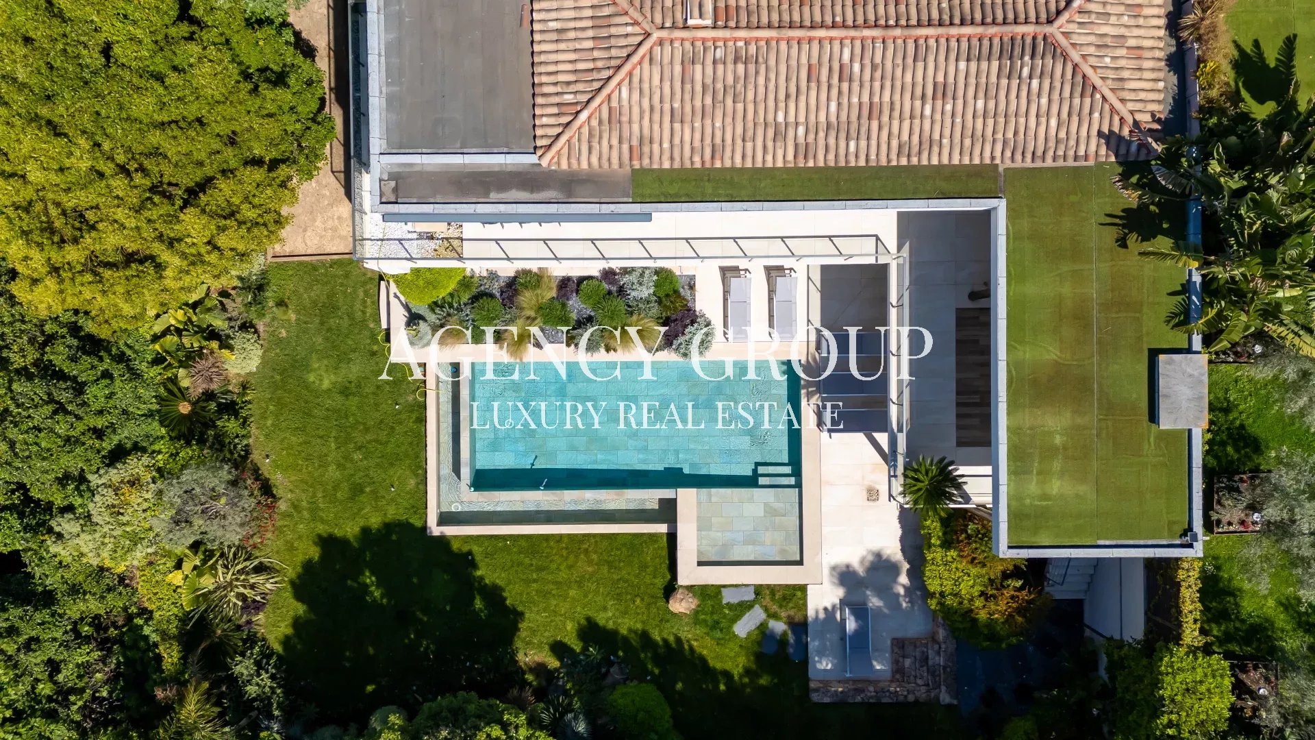 Near the Croisette and the Palais des Festival, in a residential area, this magnificent contemporary villa with clean lines has approximately 220 sqm, and is located on landscaped and wooded grounds of 1380 sqm