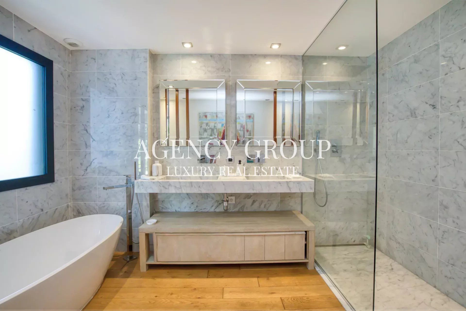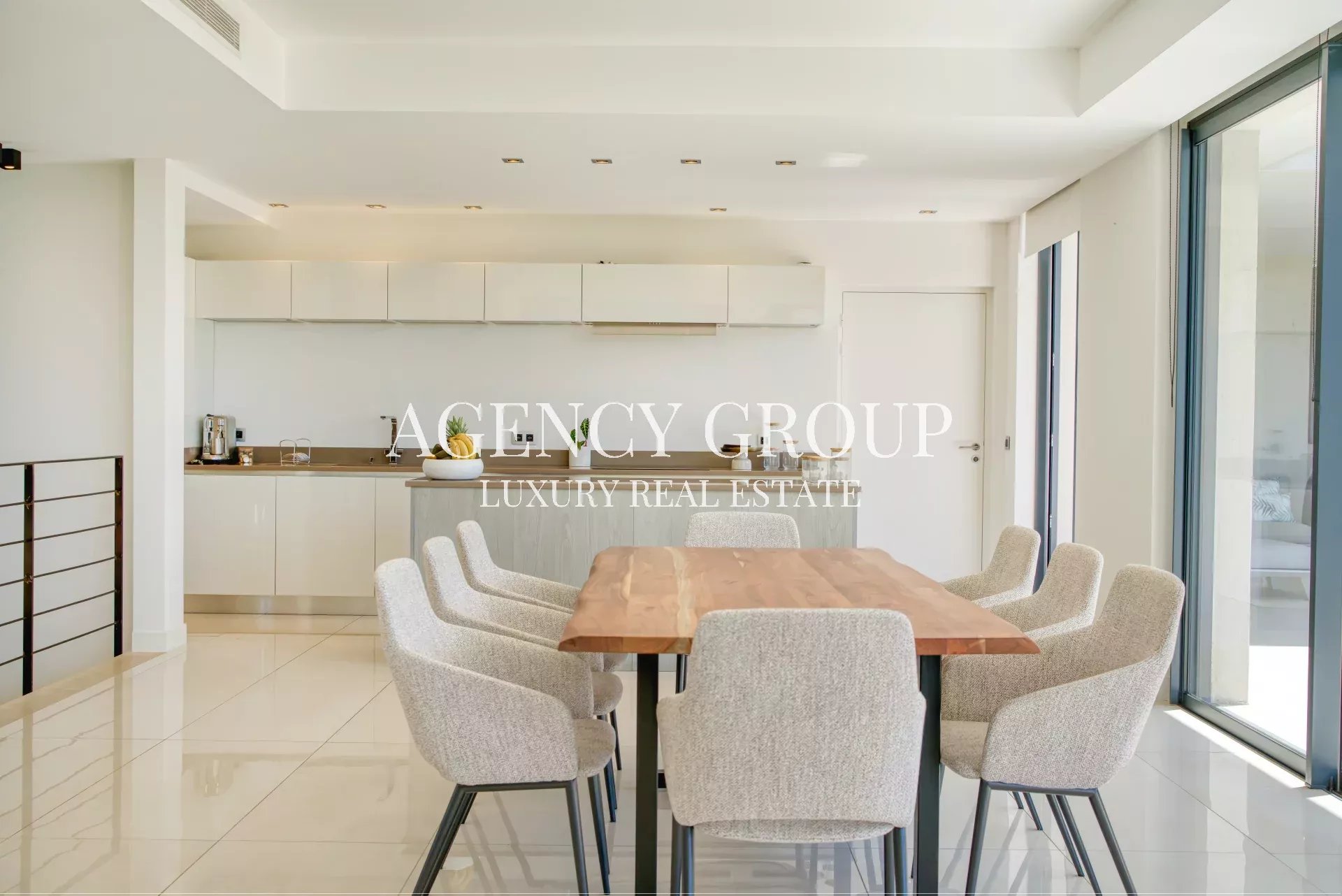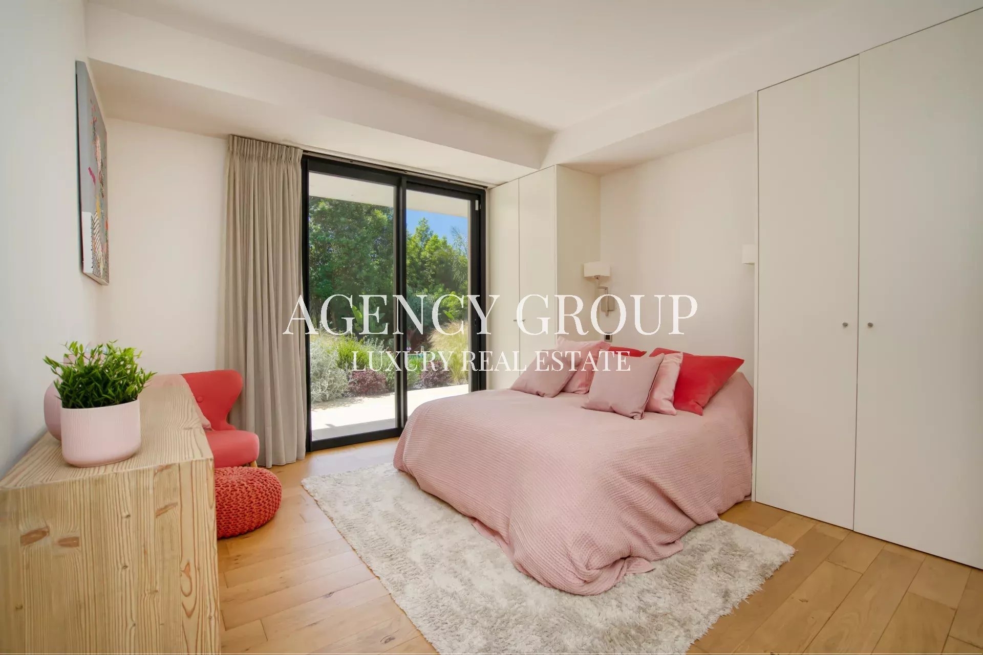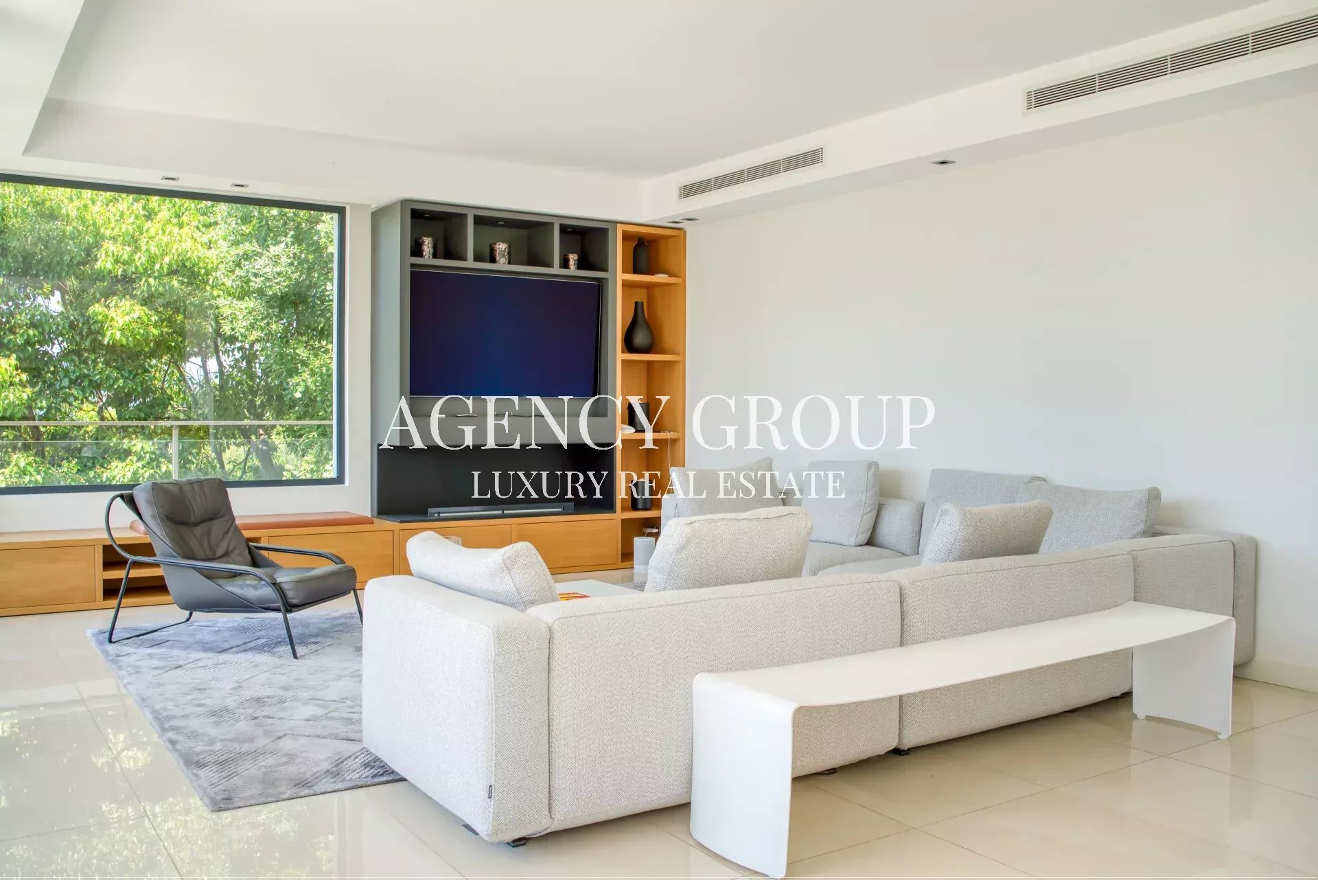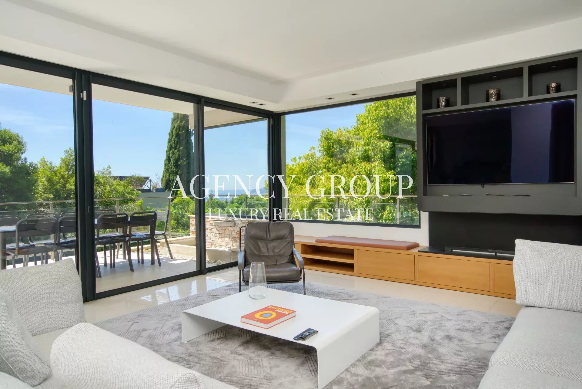 Near the Croisette and the Palais des Festival, in a residential area, this magnificent contemporary villa with clean lines has approximately 220 sqm, and is located on landscaped and wooded grounds of 1380 sqm