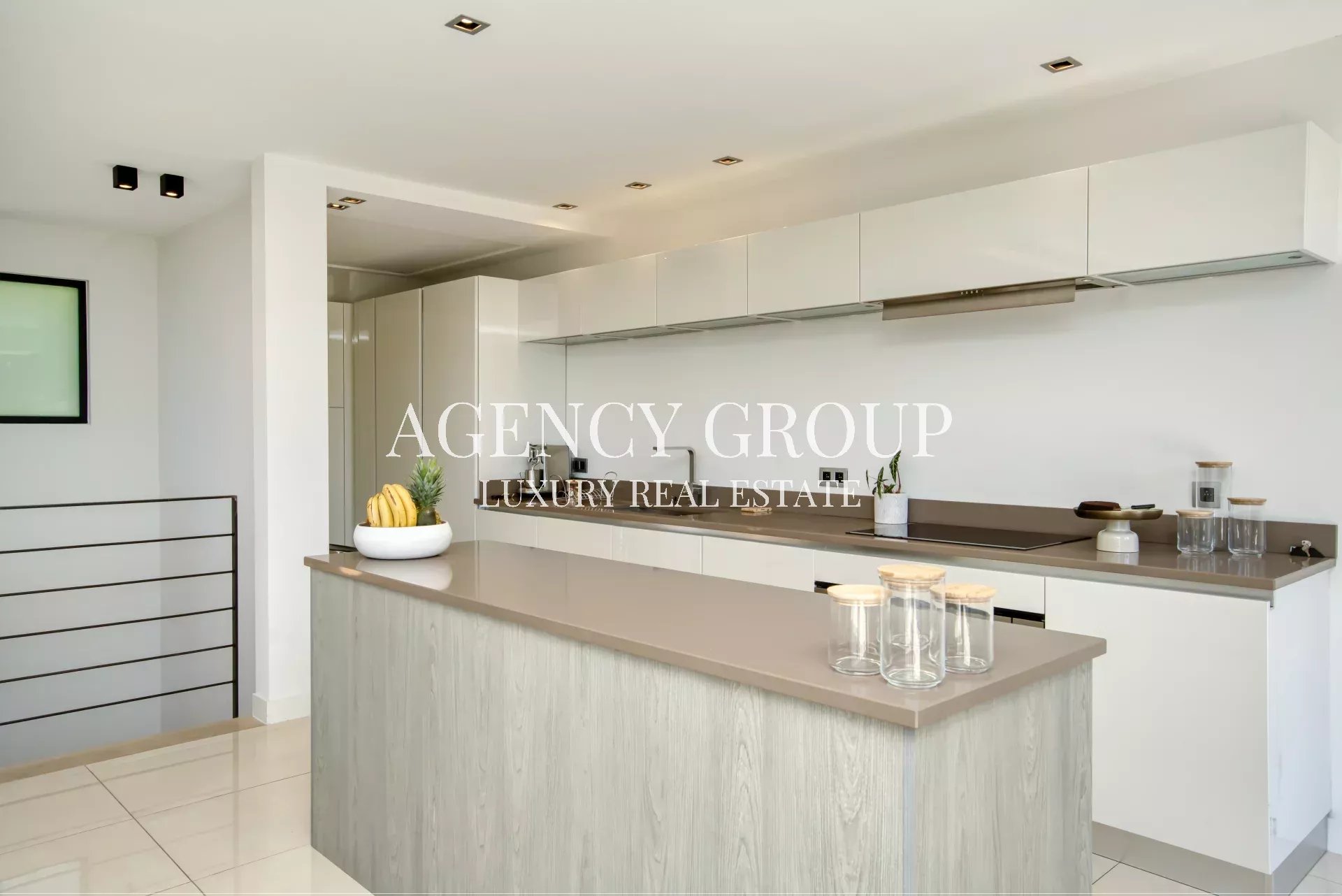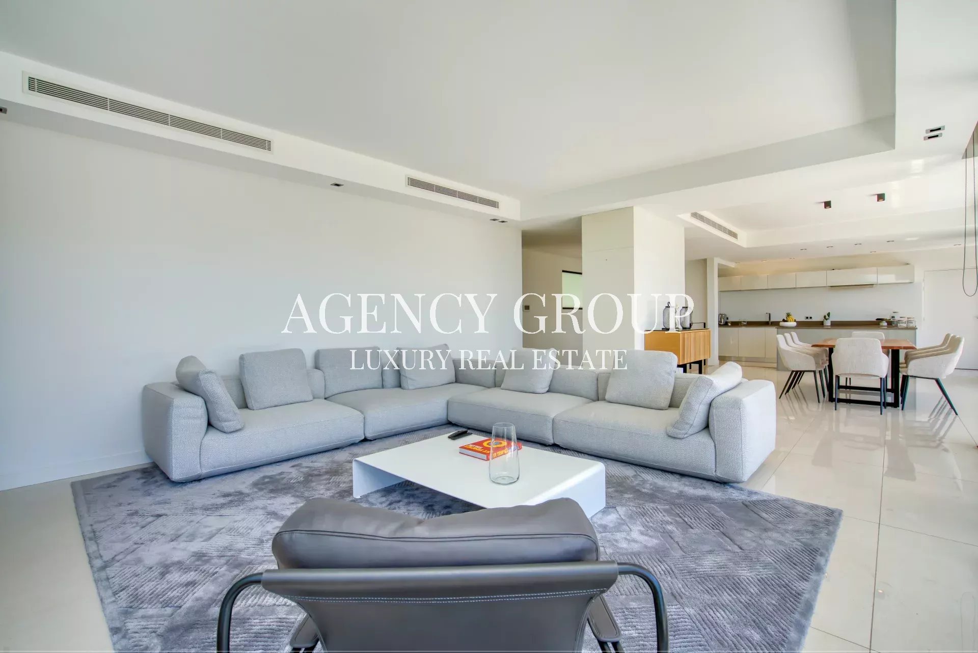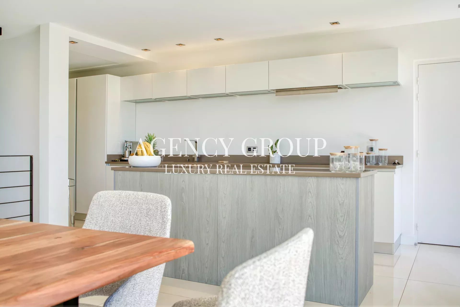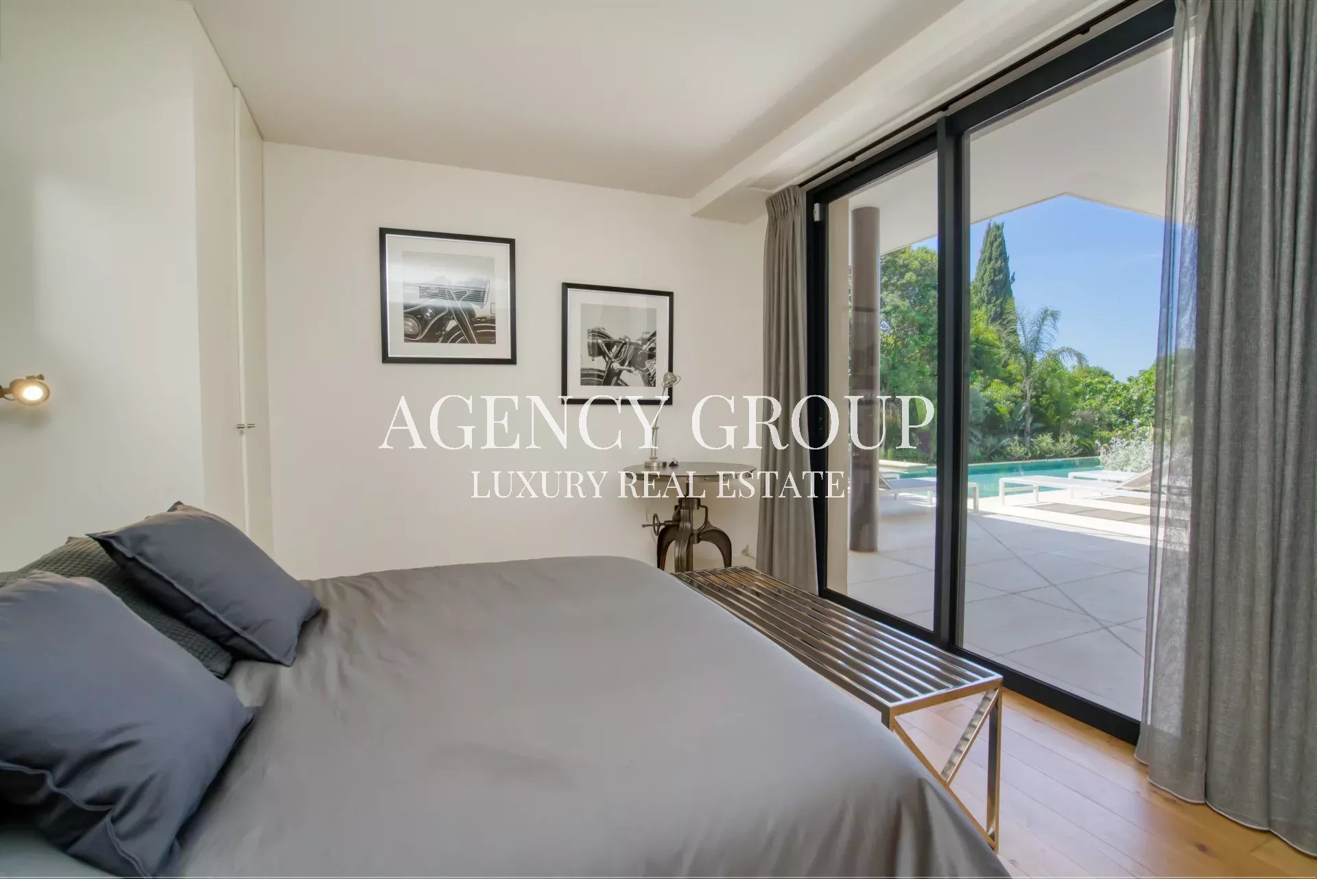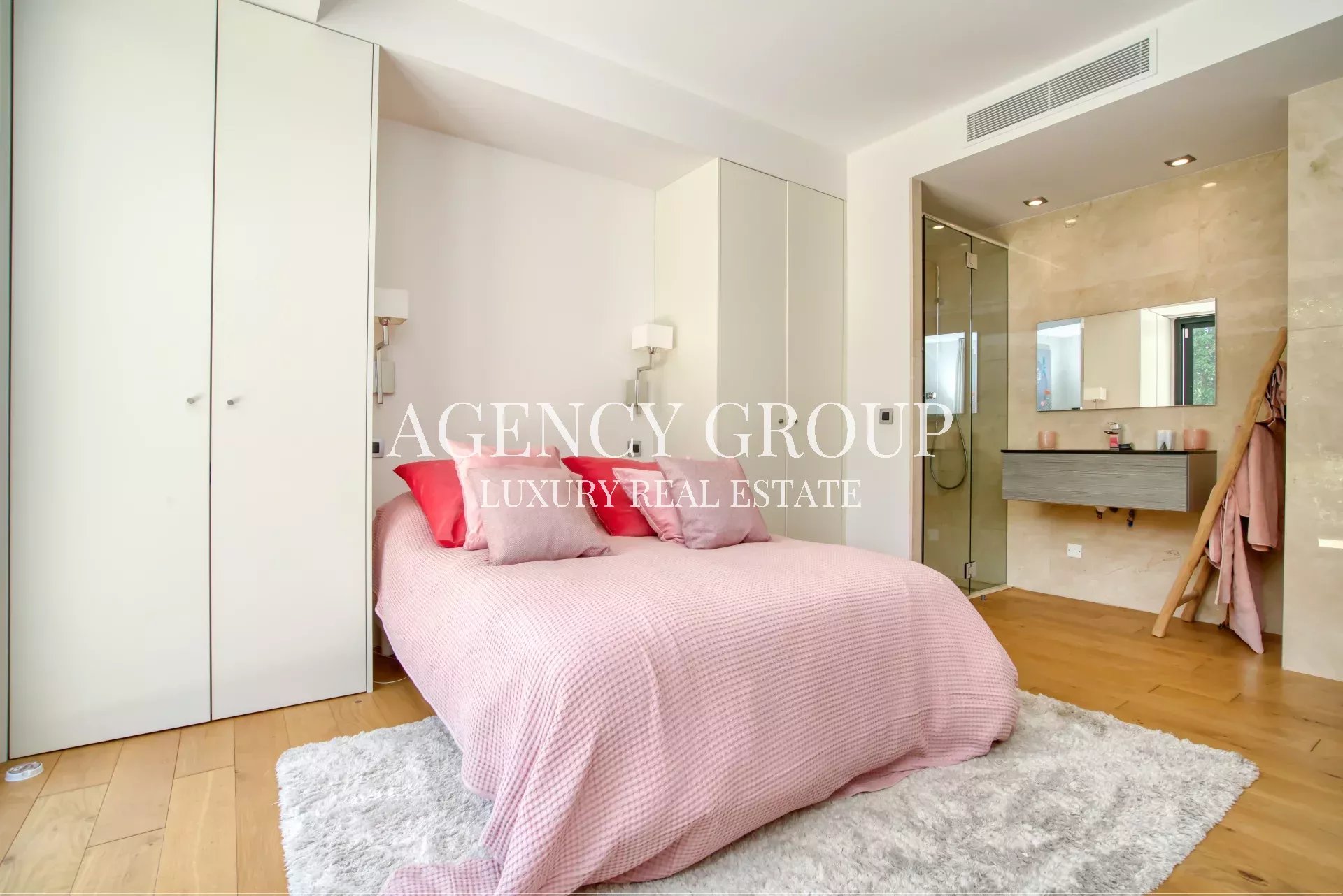Near the Croisette and the Palais des Festival, in a residential area, this magnificent contemporary villa with clean lines has approximately 220 sqm, and is located on landscaped and wooded grounds of 1380 sqm